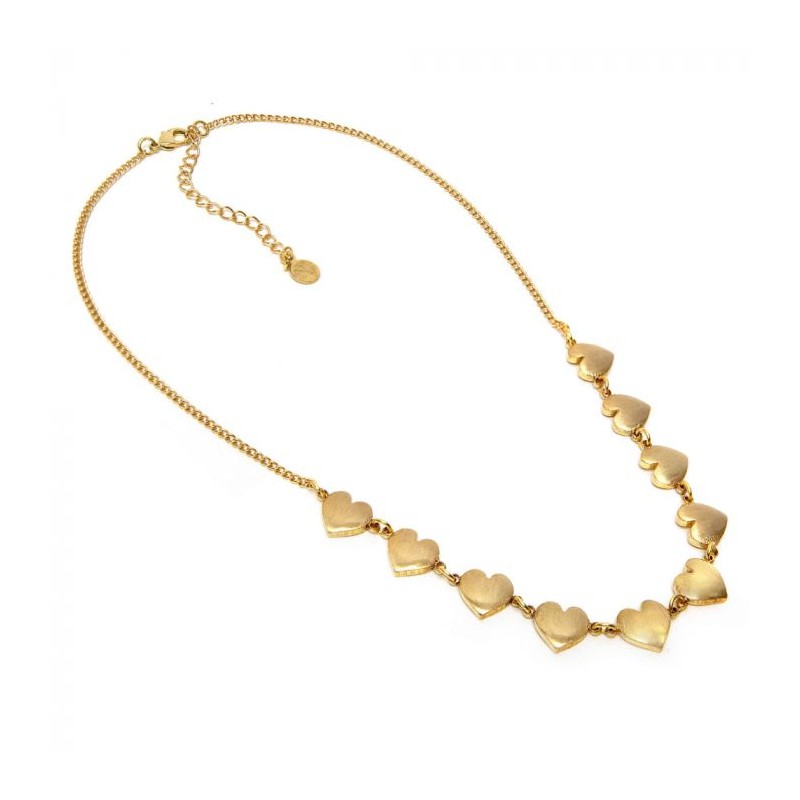 Collana in ottone con decorazione cuori. Chiusura regolabile con moschettone. Nickel tested. Lavorazione artigianale.