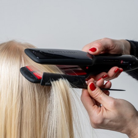 Large2 è la nuova piastra professionale di Upgrade con piattini extra large e tecnologia Bio-Infrared, studiata per offrire benefici potenziati e risultati rapidi anche su capelli lunghi, folti o difficili da gestire.Grazie al doppio raggio Bio-Infrared e al dispositivo ionizzante, Large2 lascia i capelli più lisci, morbidi e luminosi. I piattini in titanio rivestiti in ceramica tourmaline, con dimensione extra di 50 x 110 mm, assicurano una scorrevolezza impeccabile e una maggiore copertura ad ogni passata.La doppia resistenza in ceramica MCH garantisce una temperatura stabile, regolabile tramite display digitale fino a 230°C. Per una maggiore sicurezza è presente lo spegnimento automatico dopo un’ora di inattività.Il kit comprende anche le cover termoresistenti per i trattamenti e una pratica pochette per proteggere e trasportare la piastra in totale comodità.